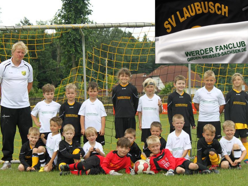 Der WFC kam im Folgenden sehr gern der Idee von WFC-Mitglied Nils nach, der von ihm betreuten Bambini-Mannschaft des SV Laubusch e.V. zur neuen Saison einen frischen Trikosatz zu spendieren. Mithilfe der Spenden konnte die G-Jugend sogar jeweils mit einem Kurz- und einem Langarm-Set ausgestattet werden. Die Brust der "Jungen Wilden" ziert nun der Schriftzug "WERDER FANCLUB GRUEN-WEISSES-SACHSEN.DE". Verein und Trainerteam des SV Laubusch e.V. bedankten sich auf ihrer offiziellen Homepage beim WFC für diese Aktion (Link zum Artikel).